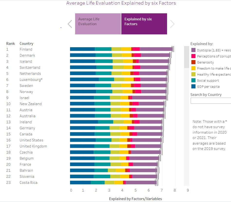 How is this possible? I’m glad you asked! Researchers ranked countries based on the respondent’s answers to the following questions: Dystopia, perceptions of corruption, generosity, freedom to make life choices, healthy life expectancies, social support, and GDP per capita.